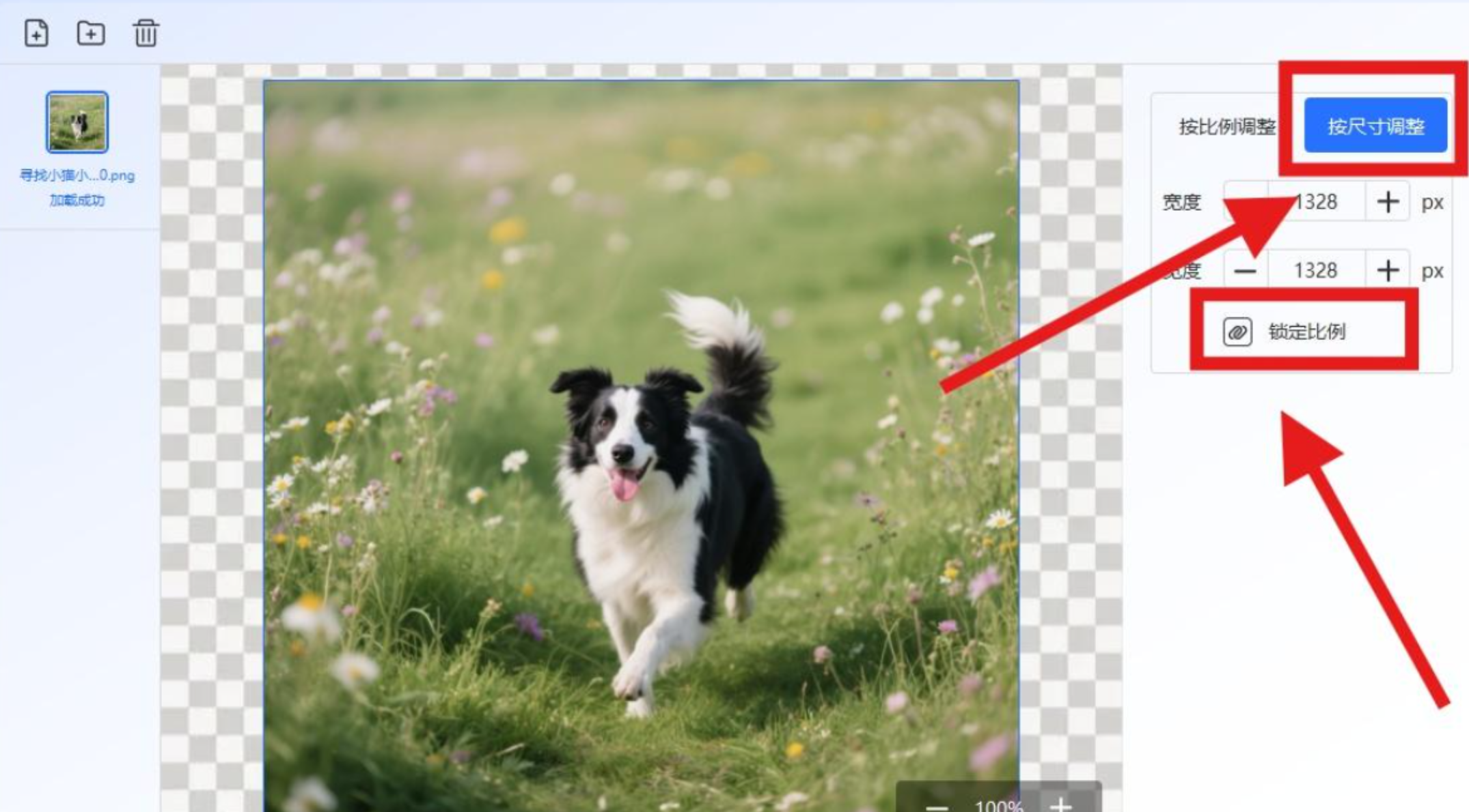 步骤三:调整参数时,先解开「锁定比例」,这样可以单独调整宽度或高度。