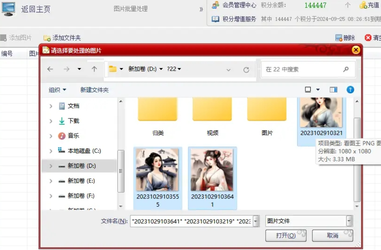 2. 点击"添加图片",可以单选也可以多选(按住Ctrl键选多个,Shift键选连续多个)