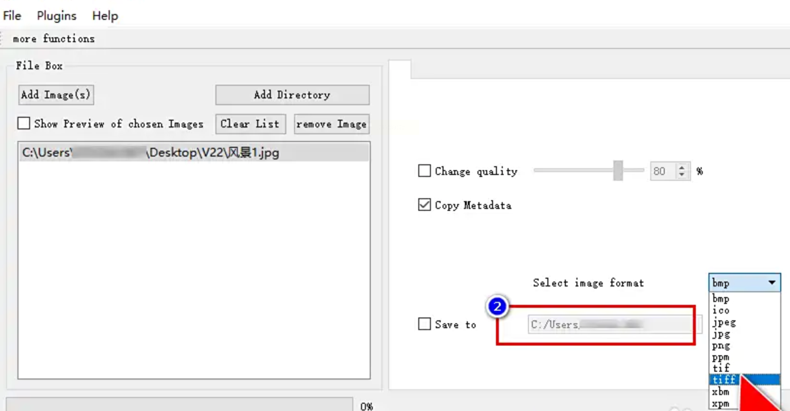 4. 在"Select image format"那里选择TIFF格式