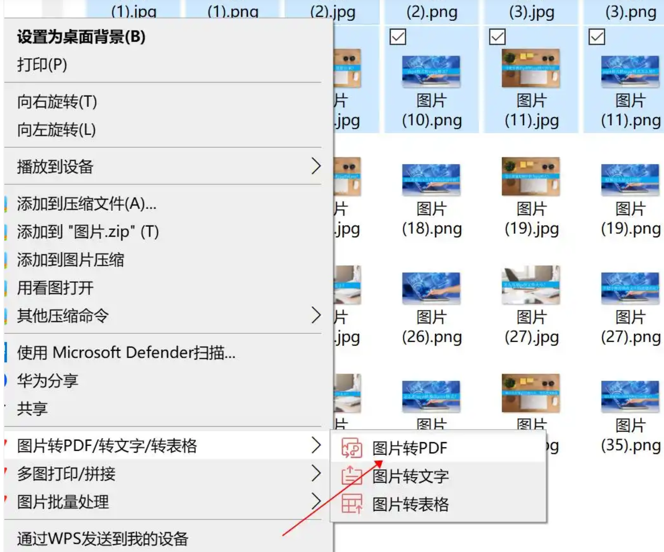 2. 右键操作:选中所有图片→右键「图片转PDF」,如果没看到这个选项,点「更多工具」里找