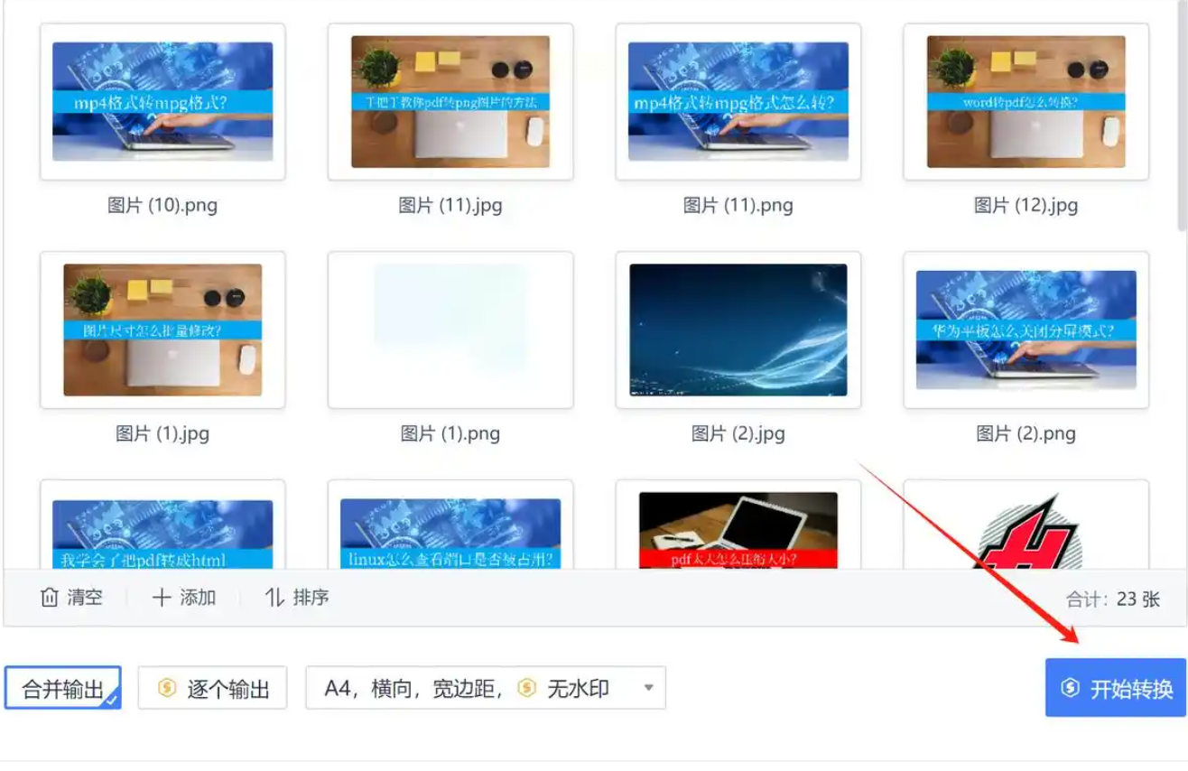 3. 一键转PDF:选「合并成单个文件」→格式选「PDF」,点开始就完事!