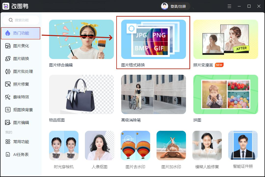 打开浏览器,访问改图鸭官网,在首页找到“图片格式转换”功能入口,点击进入。