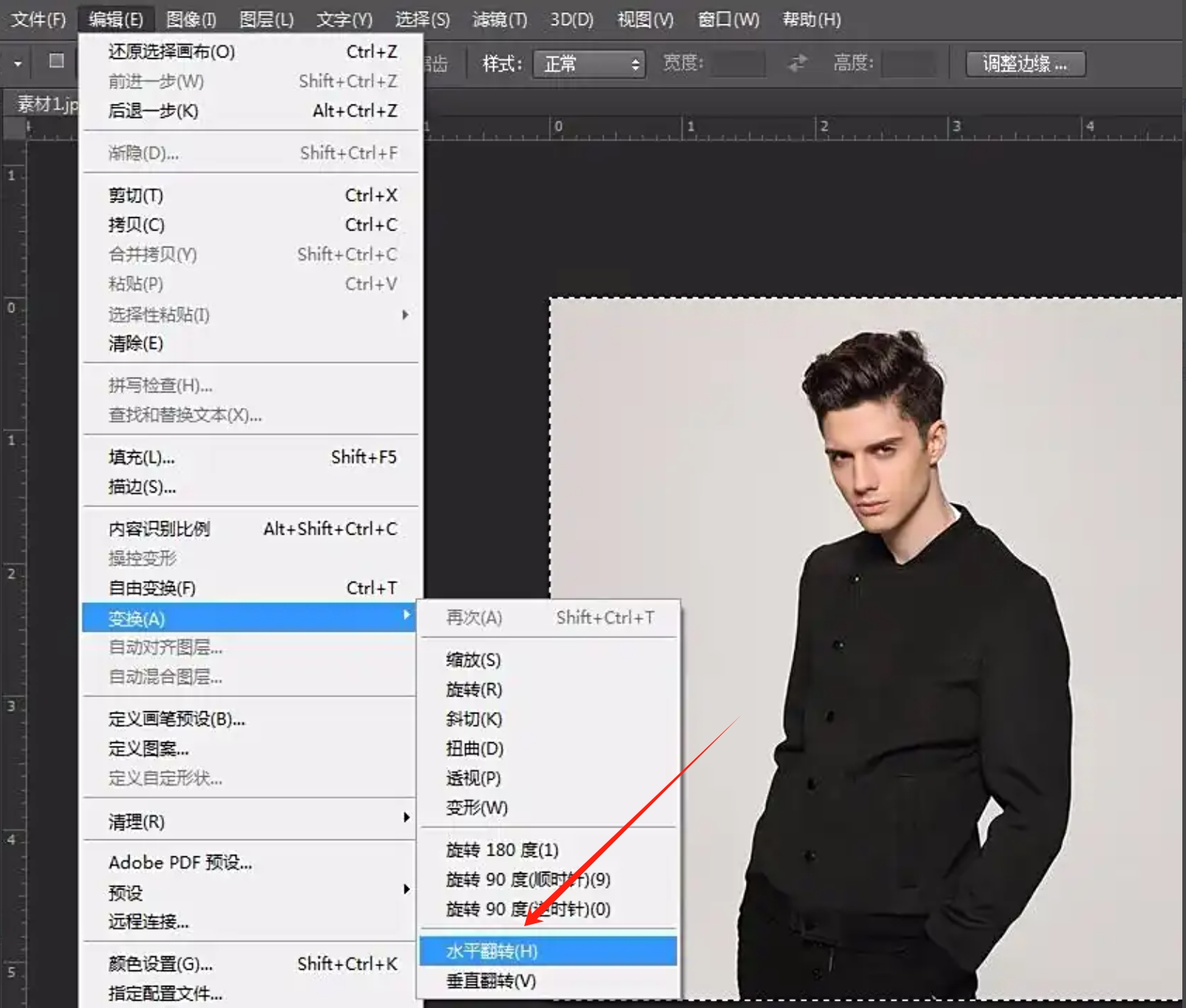3. 在旋转选项中选择"水平翻转"或"垂直翻转"