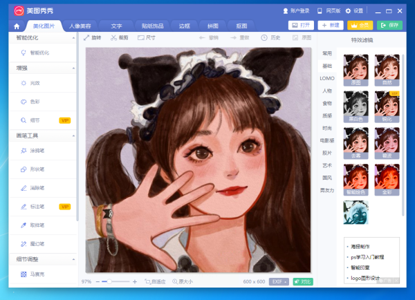 美图秀秀大家都很熟悉了,它的操作非常直观,适合快速处理单张图片。