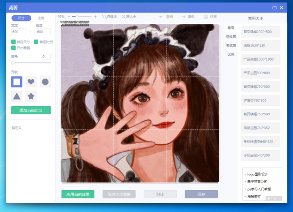 * 步骤二:打开一张图片,使用“剪裁”工具中的圆角功能进行处理。
