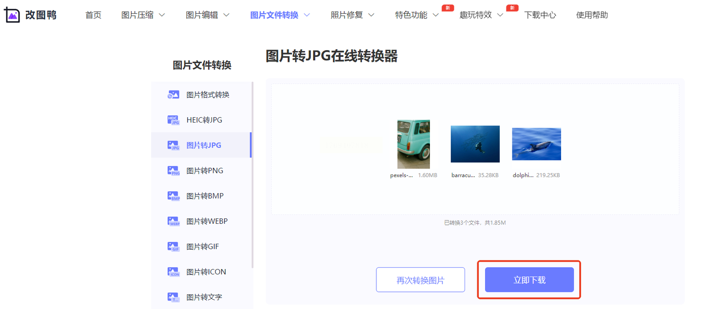 5. 点击"立即下载",选择保存位置,即可获取转换后的JPG图片。