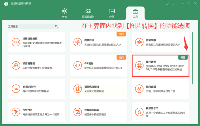 1. 下载安装后,打开软件,在首页选择"图片格式转换"功能模块。