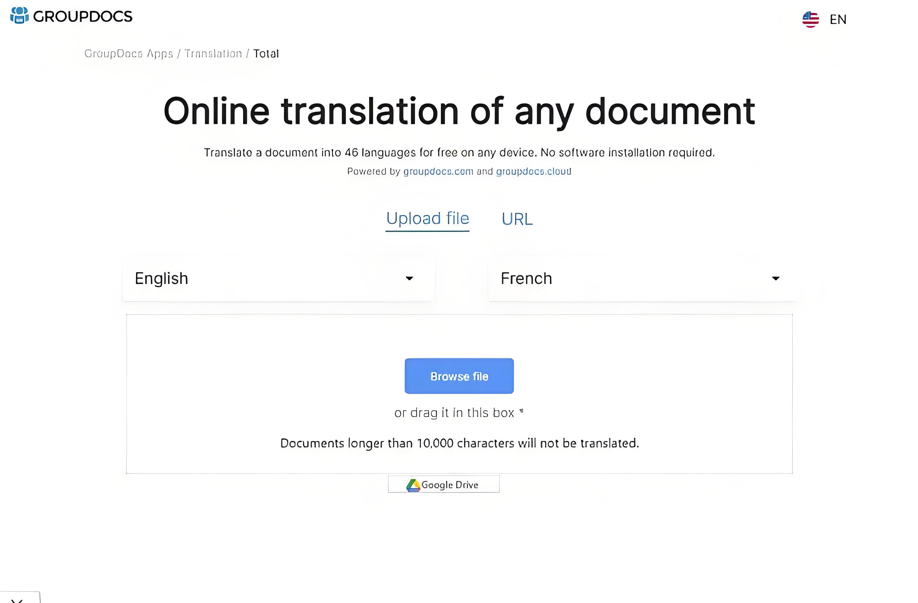 - 步骤一:打开浏览器访问GroupDocs官网(无需注册登录),点击“选择文件”区域