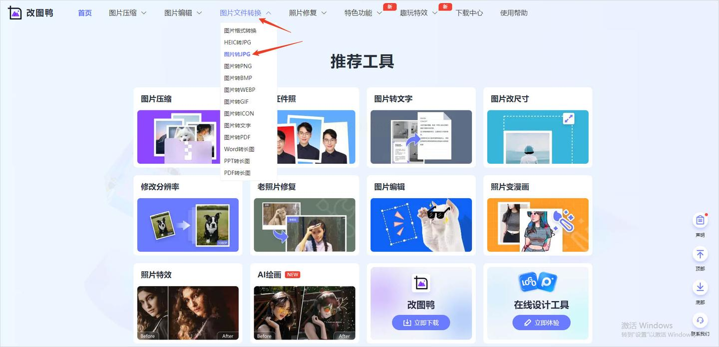 步骤一:进入网站后,在图片工具分类下找到“转JPG”功能。