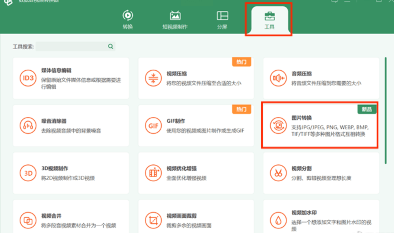 步骤一:启动软件后,进入“工具”面板,选择“图片转换”功能模块。