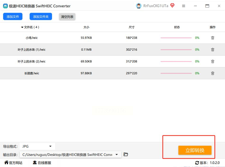 确认所有参数无误后,点击「开始转换」按钮。软件会显示实时进度条,转换速度取决于电脑性能和文件数量(100张照片约需1-2分钟)。期间可最小化窗口处理其他任务,无需全程等待。