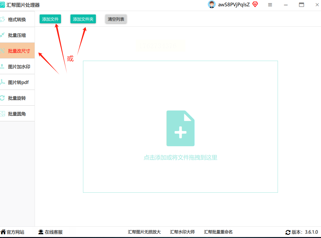 3. 导入图片:点击界面中间的“添加文件”按钮,或者直接将图片文件夹拖拽到软件窗口中。支持JPG、PNG、WebP等常见格式,一次最多可导入数十张图片。