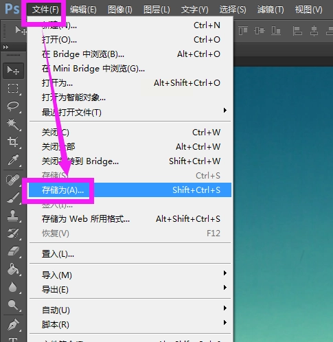 2. 完成基础编辑后(如调整亮度、锐化等),点击左上角「文件」菜单→「存储为」;