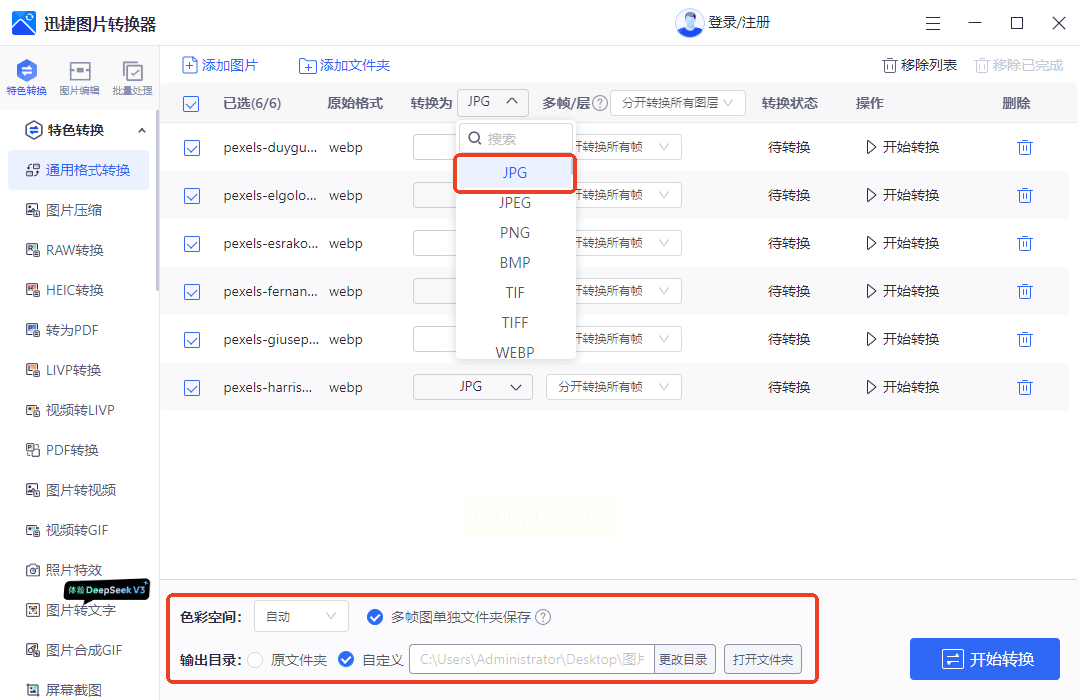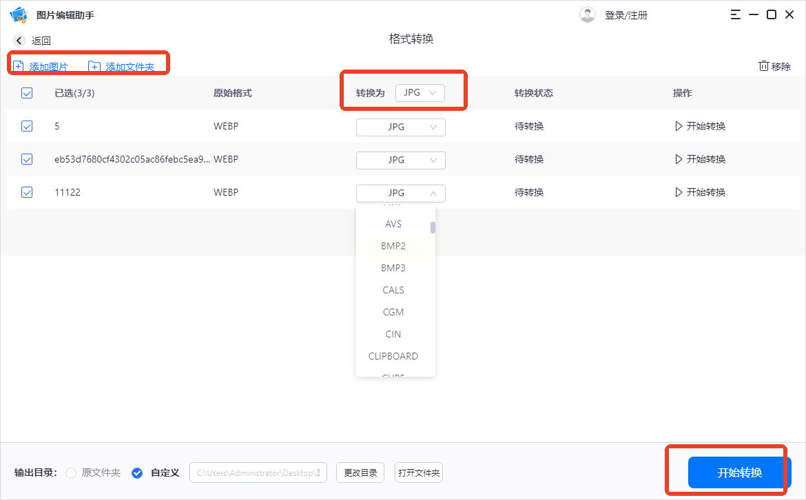 步骤一:启动软件后,进入批量转换模块。通过添加文件夹功能,一次性导入所有需要处理的WebP图片。