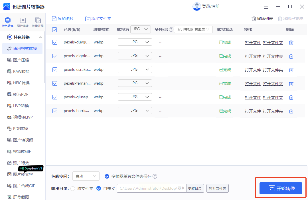 步骤五:转换完成后,建议在保存路径中打开文件进行预览,检查画质是否完好、格式是否正确。软件也提供一键打开文件夹功能,方便快速查看。