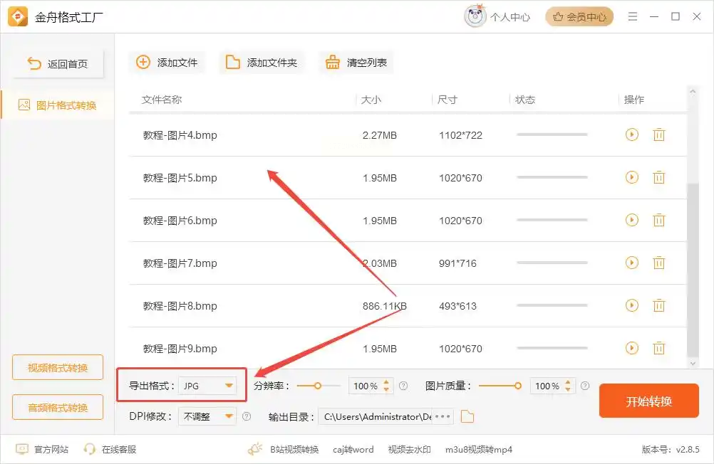 3. 参数设置:选“输出格式”为JPG,还能调整图片大小(比如发朋友圈的图,就把宽度设为900像素,自动压缩体积)