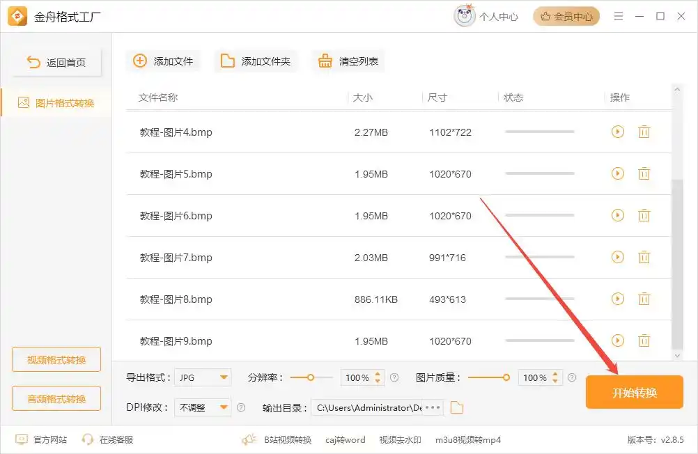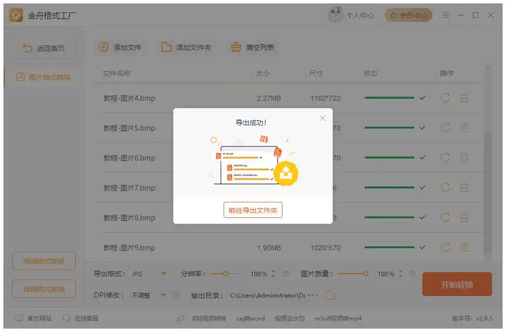 3. 批量转换:点“立即转换”,软件会自动处理所有文件,进度条能看到每张图的转换状态(遇到大文件会多转几秒,但总比手动快)