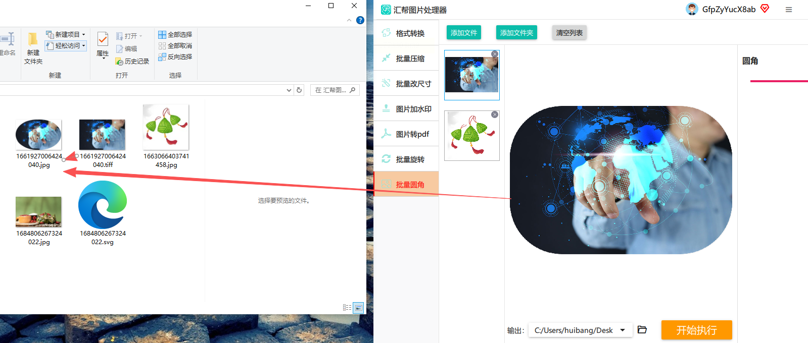 适用场景:做小红书图文、电商平台的主图改圆角,顺便压缩体积。