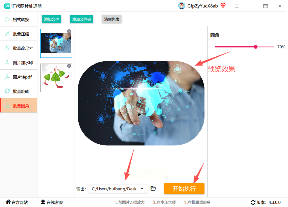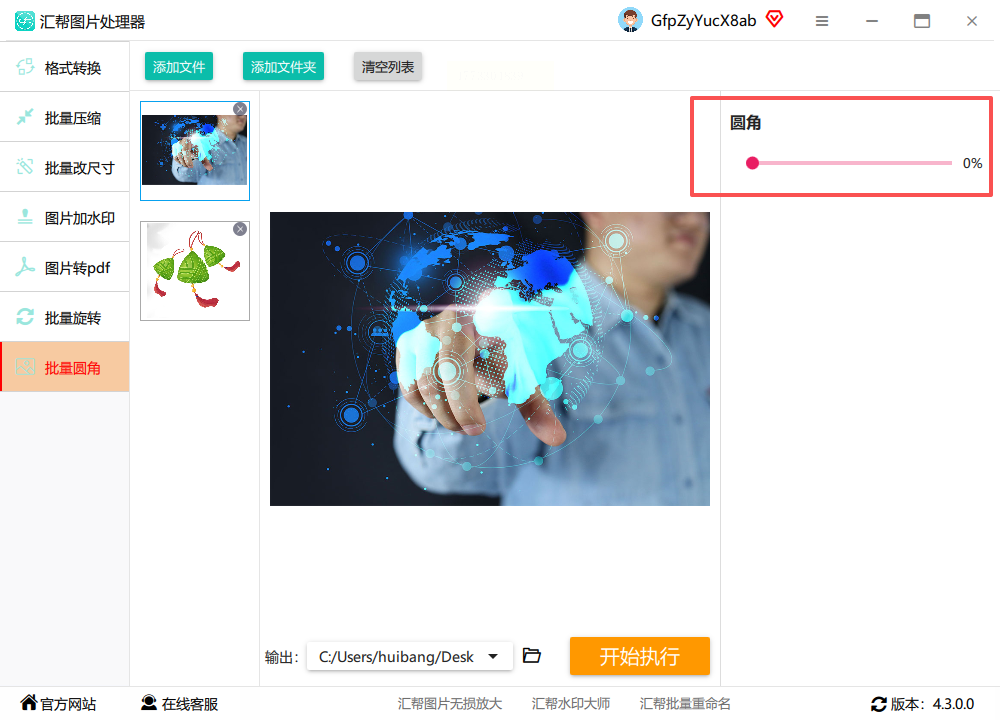 核心优势:支持批量上传,一次处理几十张图,适合公司宣传图、证件照批量改圆角,高效搞定图片加圆角。