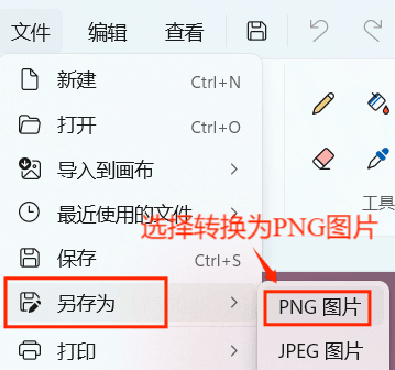 6. 这次,选择“另存为”选项,紧接着,右侧会弹出格式选择,你果断选择“PNG图片”。