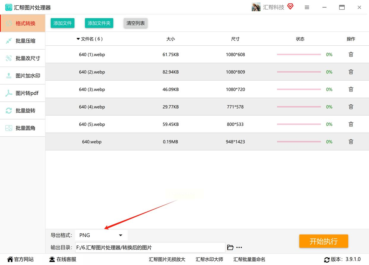 3. 图片都导入之后,看向软件下方,有一个“输出格式”的选项,在这里,稳稳地选择“PNG”。