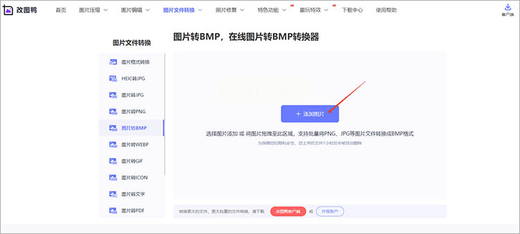 在浏览器地址栏输入改图鸭的网址(这里不具体列出),进入网站后找到“图片工具”分类,点击里面的“图片转BMP”功能。