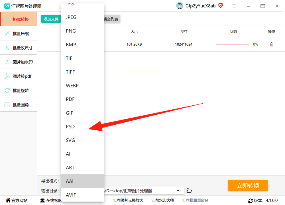 核心优势:不用安装任何软件,直接用浏览器就能操作,适合偶尔用一次的用户。但要注意它有 100MB 的文件大小限制,超过这个就得先压缩图片,这点有点麻烦。我上次传一张 200MB 的设计图,结果得先压缩到 80MB 才能转换,多了一步操作。