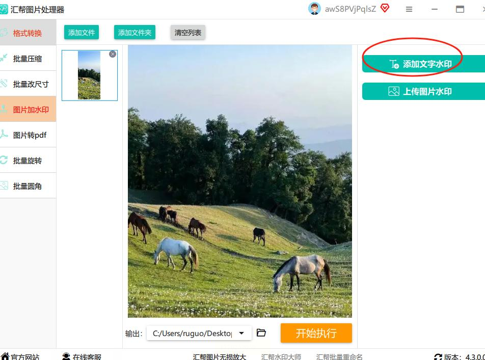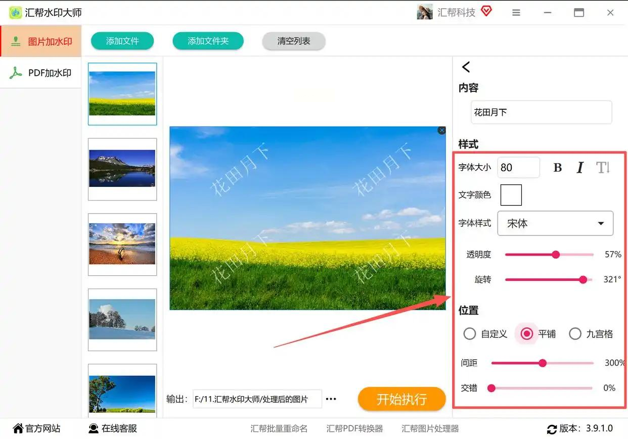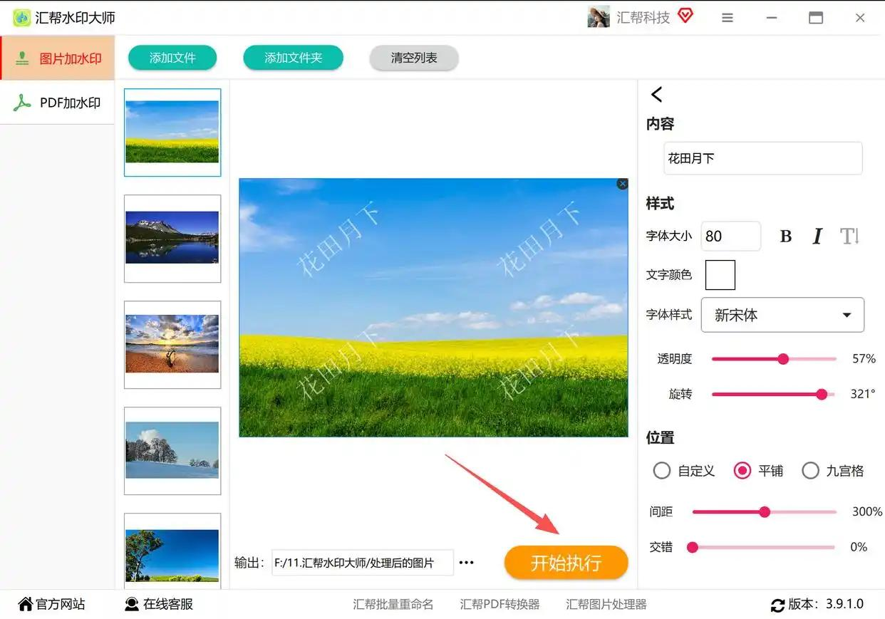 - 一键生成:点右下角的“开始执行”,软件自动给所有图片加水印,等进度条走完就OK啦!