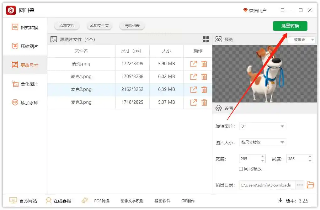 适用场景:处理不同格式图片(如PSD、TIFF)并批量修改尺寸,适合设计师群体。
