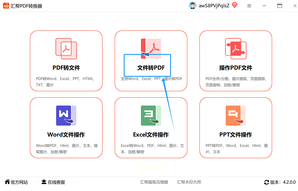 1. 启动软件,定位功能。 打开软件后,在主界面你会看到很多功能模块,像“文件转PDF”、“PDF转文件”、“PDF编辑”等。我们这次选“文件转PDF”。