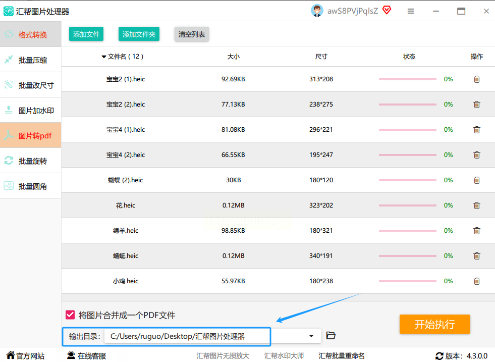 5. 选择保存路径并转换。 在“输出目录”处设置好PDF存哪里。最后,点击“开始转换”或类似的按钮。等待完成即可。