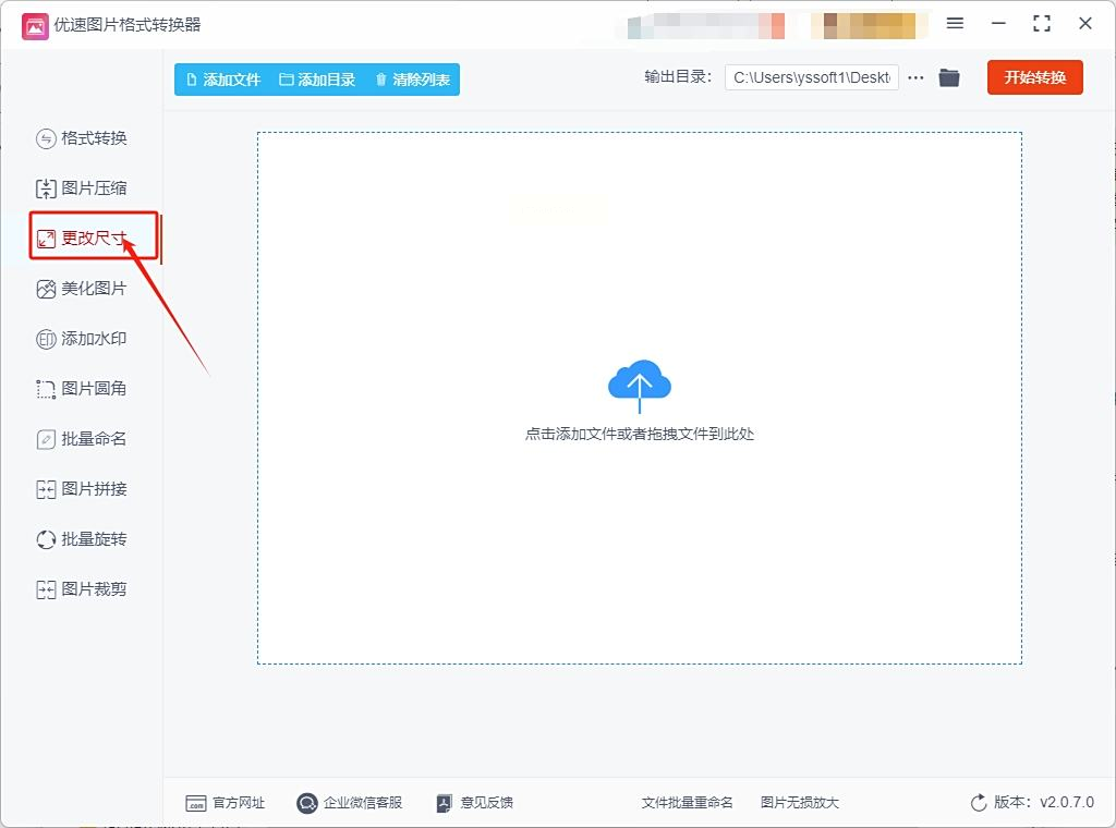 2. 打开软件,点击左侧的“更改尺寸”功能。