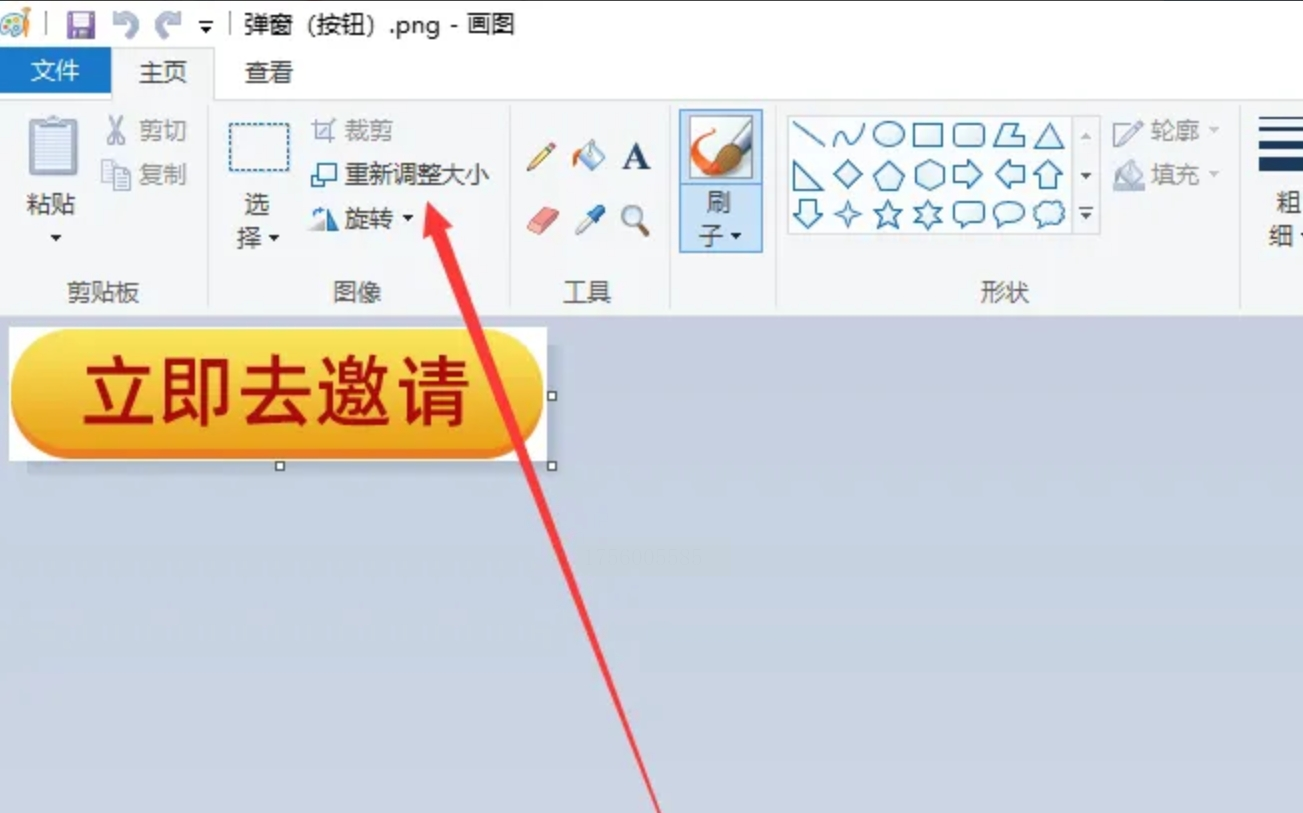 2. 在画图界面,点击顶部菜单栏的“重新调整大小”。