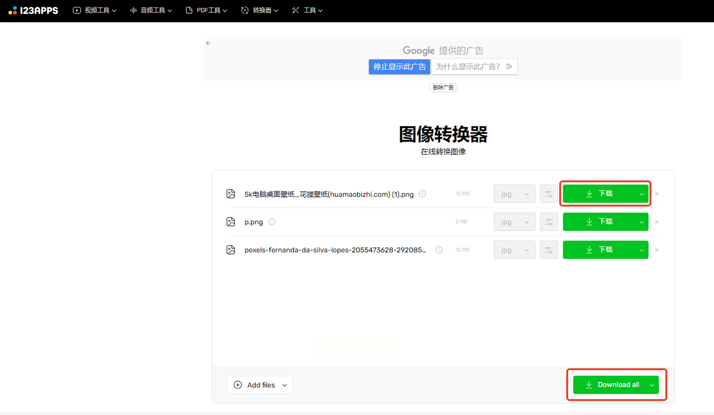 打开网站后,找到【转换器】菜单,点进【图像转换器】。上传你的PNG文件,可以用拖拽或点击上传的方式。接着,在格式选项里选JPG,然后点击“全部转换”按钮。