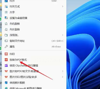 2. 在右键菜单中找到「转为PDF格式」选项,点击后自动进入转换页面。