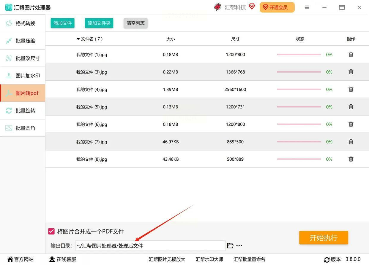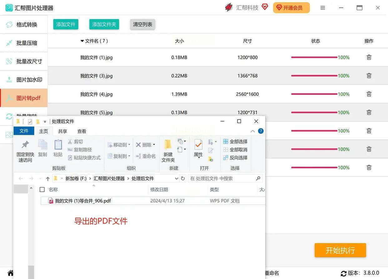 点击「开始执行」,软件自动处理,进度条走完后,直接在目标文件夹打开PDF文件。