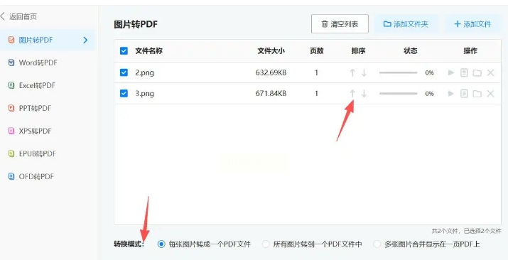 - 选择「合并为一个PDF」或「每个图片单独PDF」;