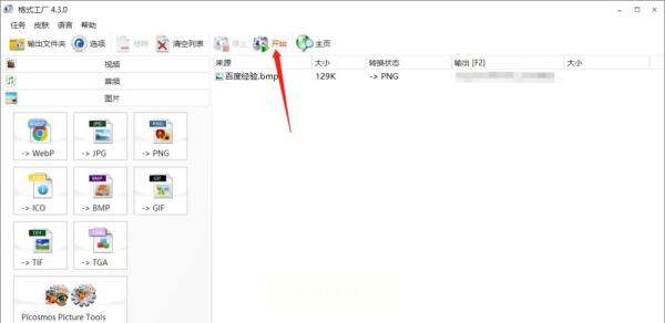点界面上的“+ 添加”按钮,在文件夹里选你要转换的BMP图片。这里可以按Ctrl多选,或者直接拖文件夹进去,格式工厂会把所有BMP都列出来,一目了然。