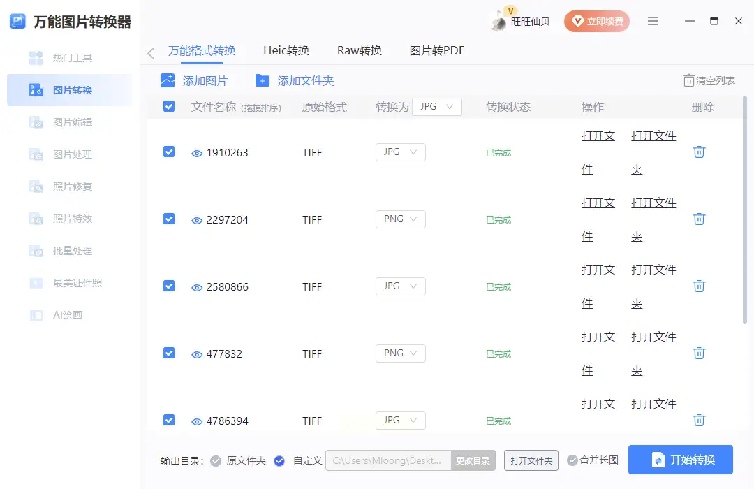 3. 转换后自动保存至指定路径,界面显示转换列表与成功状态