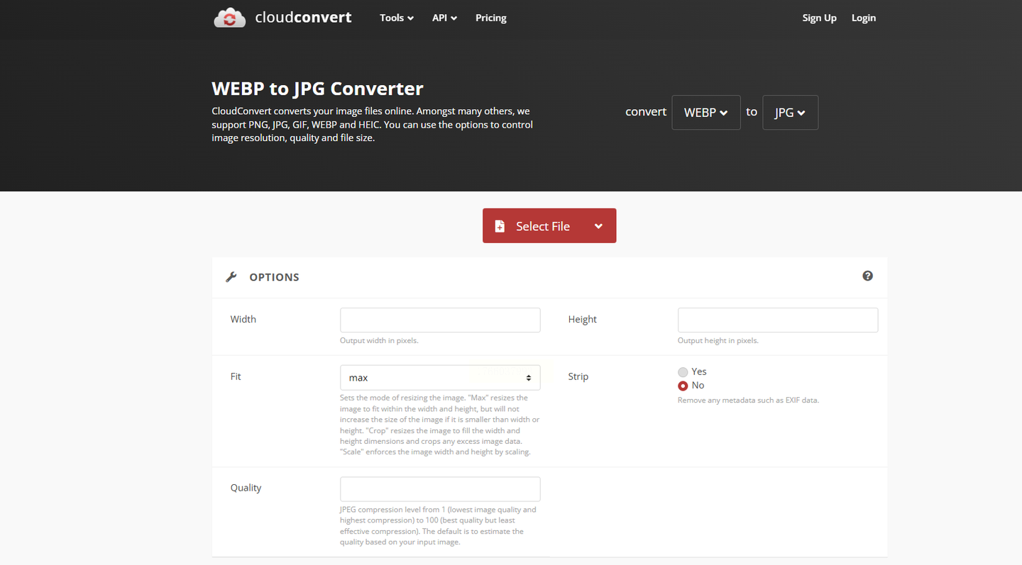 2. 上传文件:点击“选择文件”,从本地文件夹中挑选WebP图片,支持拖放操作。