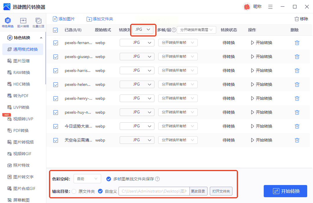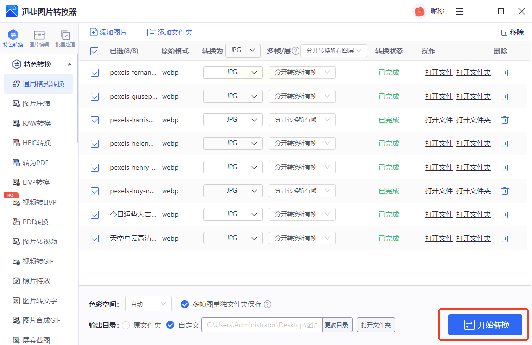4. 执行转换:点击“开始转换”,等待进度条完成,转换后的JPG文件会自动保存在指定位置。