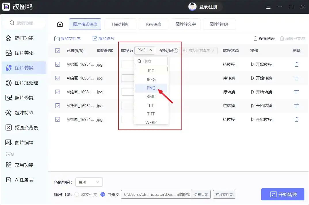 步骤四:全部设置完成后,点击界面右下角的“开始转换”按钮。软件会开始处理,你只需等待进度条完成,转换好的PNG图片就会保存在预设的文件夹里。