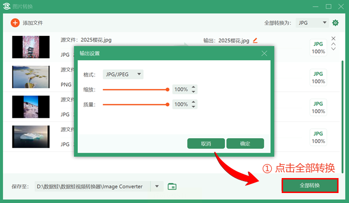 一切设置妥当后,点击“开始转换”或“确认”按钮。稍等片刻,转换完成后,系统会提示你将新的JPG图片保存回相册或你指定的目录中。