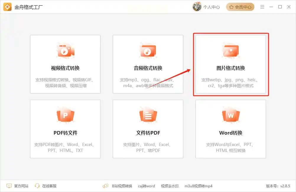 启动软件后,在界面上寻找“工具箱”、“更多功能”或类似标签页,在其中找到“图片转换”功能并点击进入。