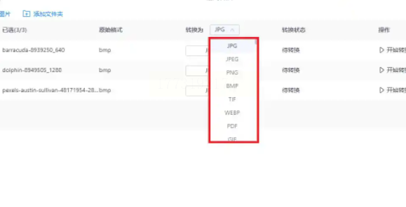 点击「添加文件夹」按钮,导航到包含BMP图片的文件夹(如“产品图_原始文件”),所有图片会自动加载到列表中。