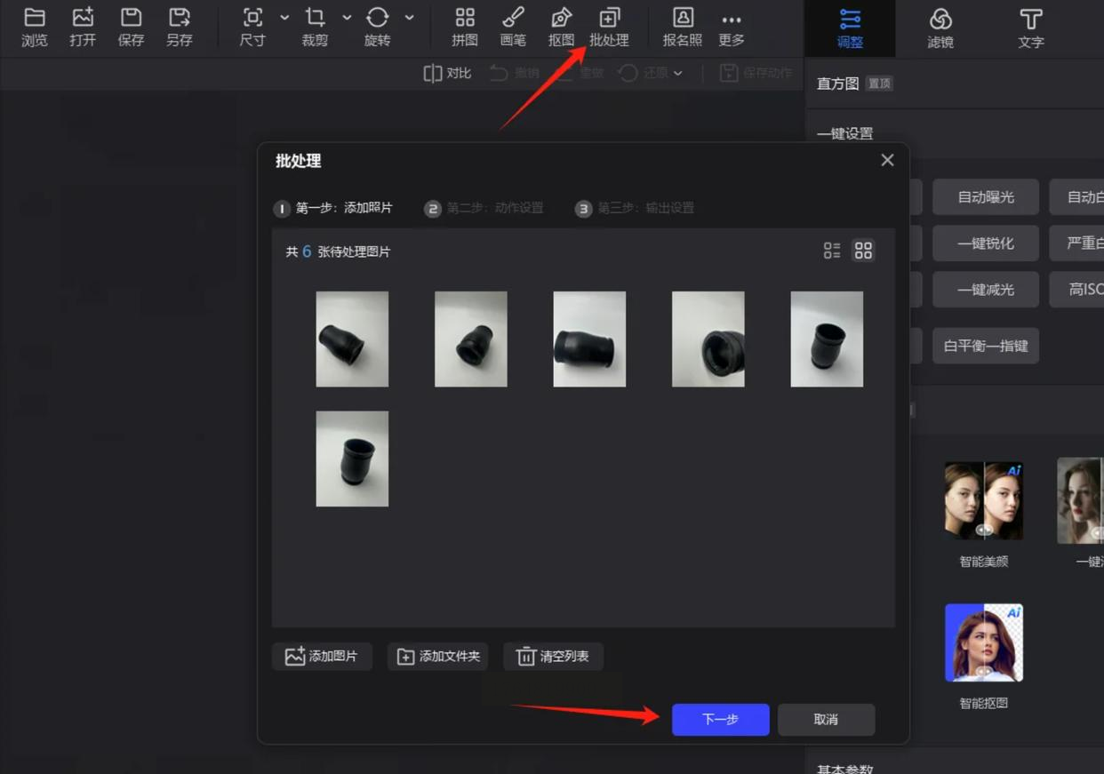 图片导入后,别急着单张操作。看软件顶部菜单或工具栏,找一个叫“批处理”的按钮。这个功能就是为批量操作而生的,点开它。