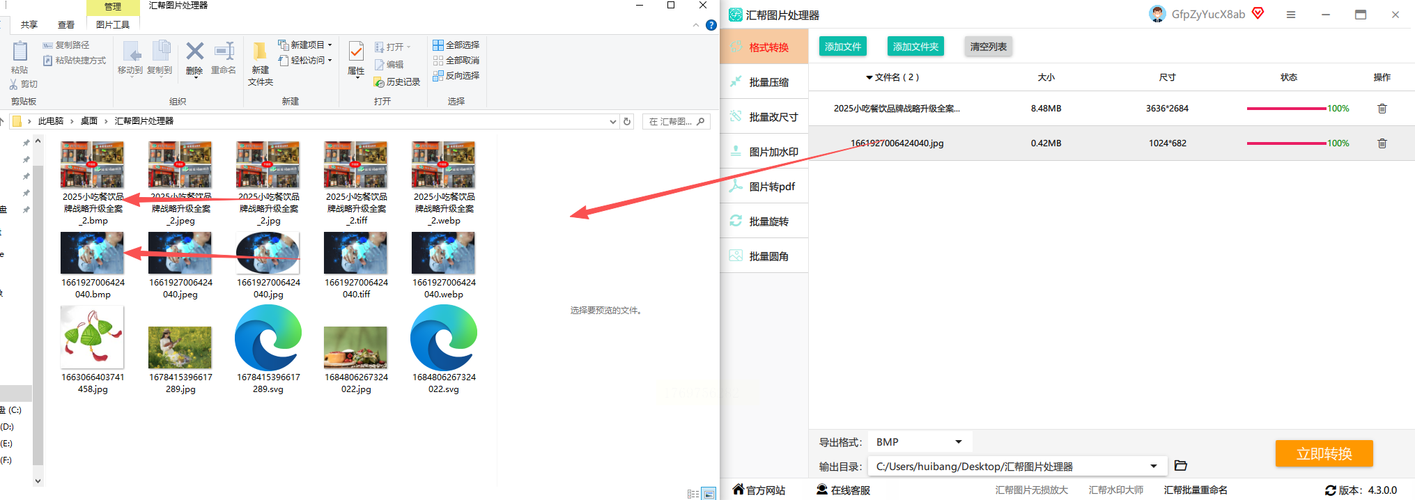 汇帮图片处理器,支持JPG/PNG/BMP、webp、苹果heic等图片一键批量转换、图片批量压缩、图片尺寸修改、图片添加水印等功能