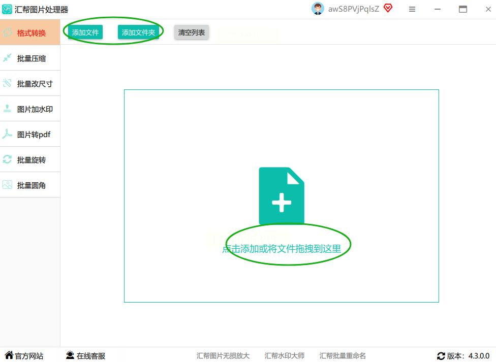 3. 添加图片:点击“添加文件”按钮,可通过以下方式批量添加: