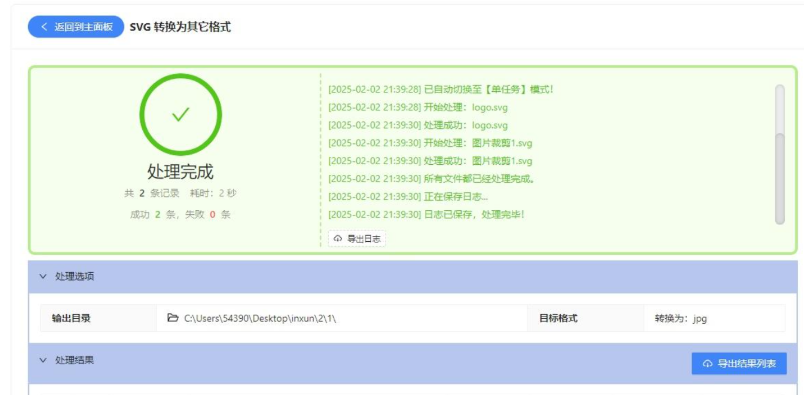 4. 确认转换:设置好后点「开始处理」,处理完的文件会自动保存到你指定的文件夹,支持批量处理,适合设计师和自媒体人。