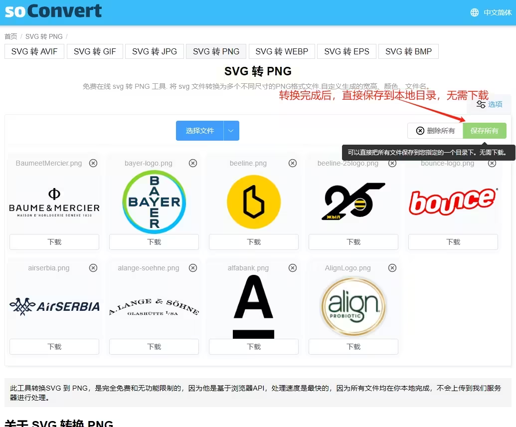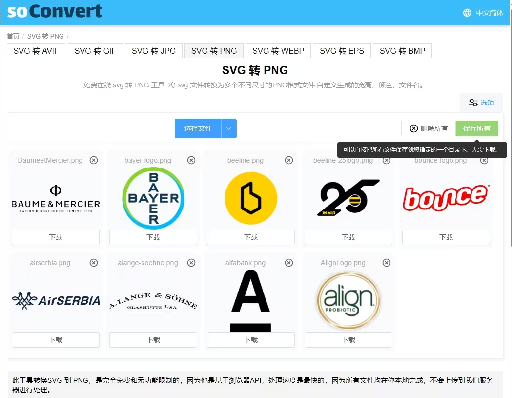 3. 快速转换:点击「保存所有」,软件会自动生成PNG文件,转换速度很快(实测比同类工具快1-2倍),完成后直接点「下载」保存到电脑。